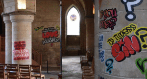 Pero lo más grave ni siquiera es eso. Lo peor son los motivos por los que se efectuó la barrabasada. Los explicó Su Eminencia Reverendísima David Monteith, Decano de Canterbury, declarando que ellos mismos —no los moros, no los pakis violadores de niñas, no los ateos, no los revolucionarios….— habían escupido contra lo bello y profanado lo sagrado con el fin de «representar las voces de las comunidades marginadas» [sic]. Y añadió: «Hay una crudeza que se ve magnificada por el estilo del grafiti, que es disruptivo. Es puro y sin filtros […]. Esta exposición busca tender puentes entre culturas, estilos y géneros y nos permite recibir los regalos de gente más joven que tiene mucho que decir».